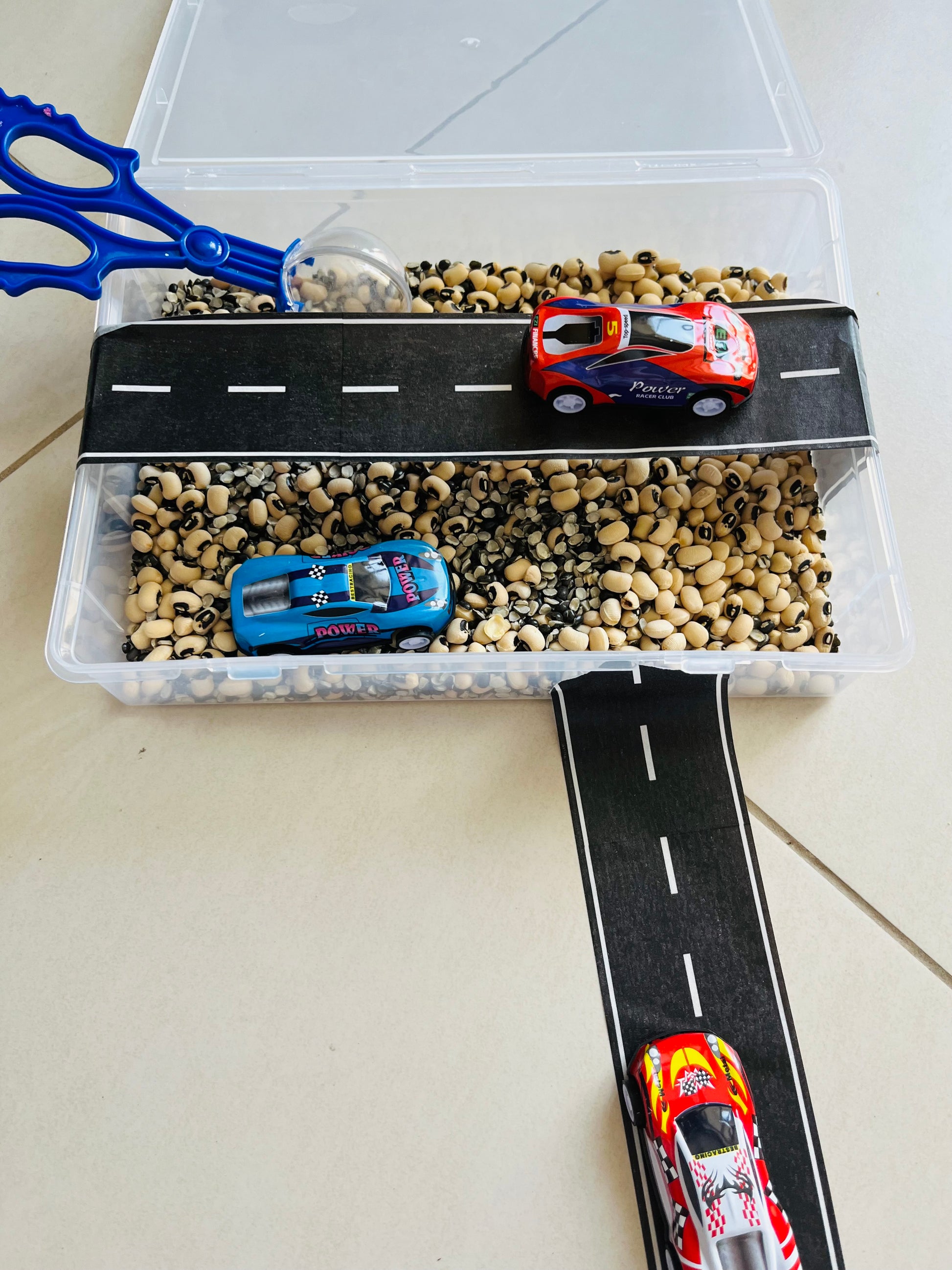 Introducing our brand new Sensory Car Travel Kit, designed to keep little hands busy and imaginations racing! It features a bean base perfect for scooping and pouring, a sticker road track for endless adventures, and a painting car activity to spark creativity. With easy storage, it’s ideal for travel and helps develop fine motor skills along the way.